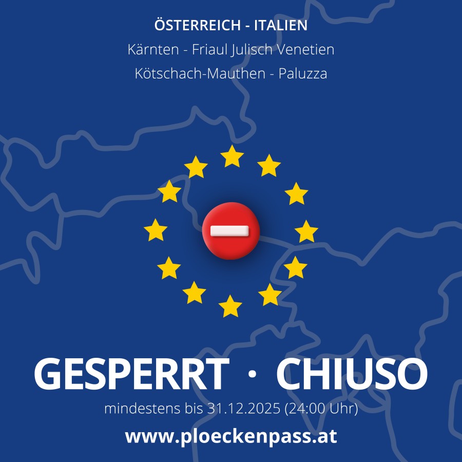 Ab 29.09.2025 bis voraussichtlich 31.12.2025 (24:00 Uhr) ist der Plöckenpass rund um die Uhr gesperrt. Laut ANAS muss die Baustelle (aufgrund von Instabilitäten des Berges) abgeschlossen werden.
