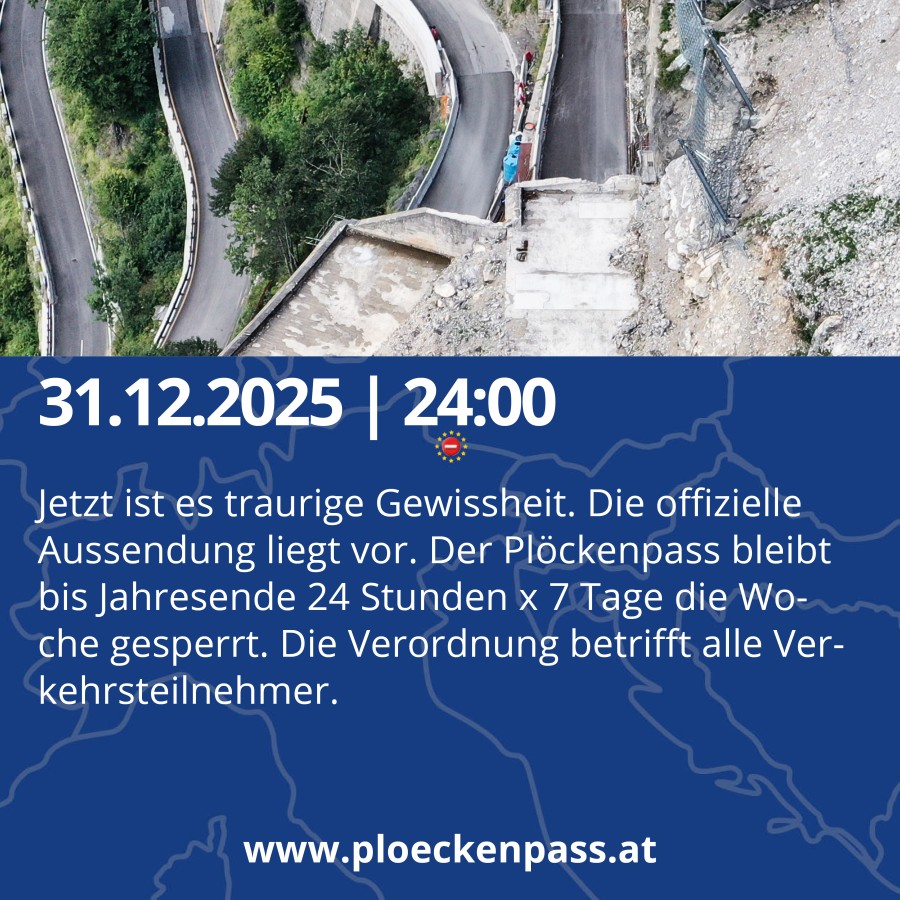 Der Plöckenpass bleibt bis 31.12.2025 24:00 Uhr für alle Verkehrsteilnehmer geschlossen.