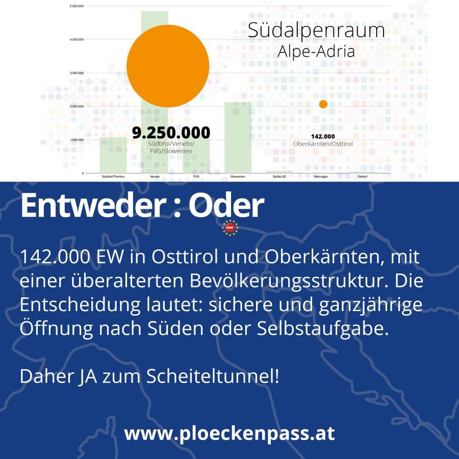 Ja! zum Scheiteltunnel. Ja! für die positive Entwicklung und eine faire Chance für Osttirol, das Drautal und das Gail- und Lesachtal. Oder Selbstaufgabe hin zu einem unterversorgten, landschaftlichen schönen aber nicht mehr lebenswerten Fleck in der Landschaft.